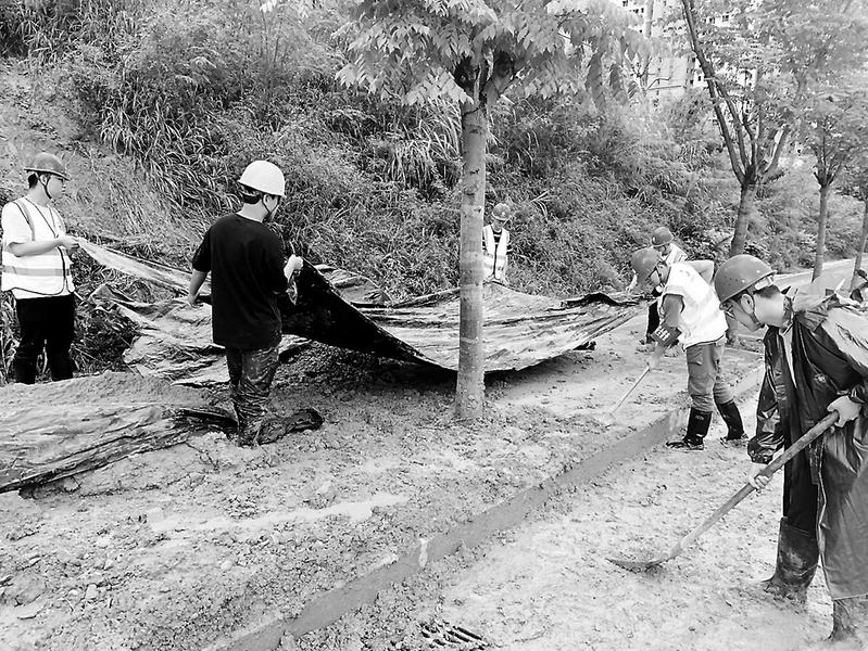 5月6日,受特大暴雨影響,龍巖美倫·生態城項目擋墻邊坡出現山體滑坡,大量石頭、泥漿沖入市政道路。經過該項目部黨員志愿者服務隊5個多小時的全力搶險,邊坡滾落的泥沙被清理干凈。隨后,黨員志愿者在塌方處拉起警戒線,立起警示牌,并持續對項目展開安全巡查,確保群眾出行安全。