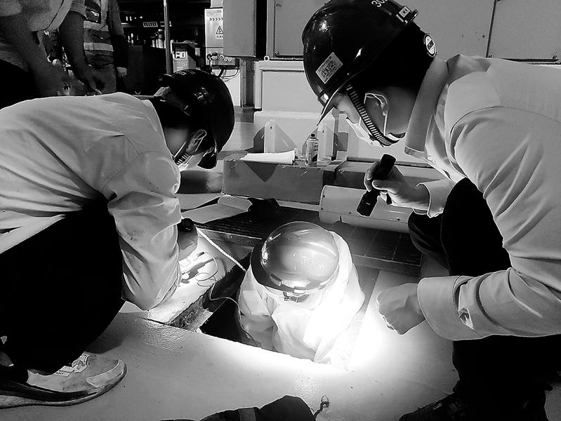近日,鴻山熱電公司汽機(jī)專業(yè)結(jié)合防非停工作,對(duì)閉式水系統(tǒng)隱蔽段管道進(jìn)行專項(xiàng)檢查,通過系統(tǒng)性檢查,杜絕閉式水系統(tǒng)的介質(zhì)外漏,消除影響機(jī)組持續(xù)穩(wěn)定運(yùn)行的隱患。(韓強(qiáng)攝)