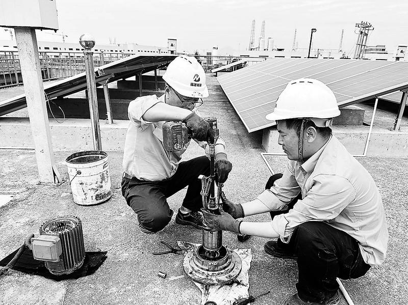 為切實做好夏季高溫季節(jié)機電設(shè)備的安全穩(wěn)定運行工作,福建城投水務(wù)投發(fā)公司進一步加強對設(shè)備的運行跟蹤管理和日常“體檢”工作。圖為5月19日,該公司機電設(shè)備部正在對水解酸化池攪拌機進行安全檢查。(鄭靜 攝)
