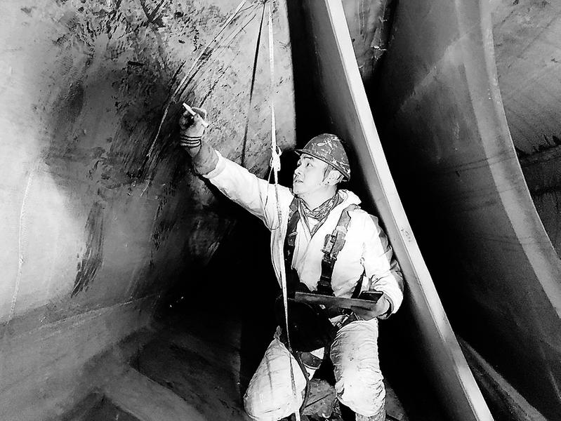 近期,福能新能源公司省山風(fēng)電場(chǎng)組織人員對(duì)部分受風(fēng)蝕的風(fēng)機(jī)葉片進(jìn)行修復(fù),進(jìn)一步提高設(shè)備的可靠性和穩(wěn)定性。圖為5月28日,技術(shù)人員進(jìn)入省山風(fēng)電場(chǎng)#12風(fēng)機(jī)葉片內(nèi)部進(jìn)行檢查。(江偉忠攝)
