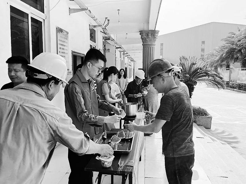 建材控股福清混凝土公司工會于6月2日開展“情系職工,夏送清涼”慰問活動,向一線職工親手送上綠豆湯及西瓜等降溫物品,并叮囑大家要注意勞逸結合,在確保安全的前提下開展好各項工作。(薛琴琴攝)