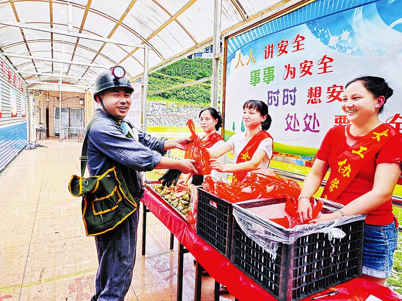 端午節(jié)之際,永安煤業(yè)水井坑煤礦組織開展“安全生產(chǎn)、‘粽’在落實”主題送溫暖活動,在送去端午安康祝福的同時,也叮囑職工要認(rèn)真落實各項安全措施以及規(guī)章制度,確保安全生產(chǎn)。(鄒超男 攝)