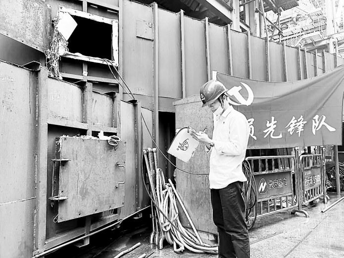 龍安熱電公司2號(hào)鍋爐檢修期將至。近日,該公司利用端午假期,組織第二支部黨員開展臨檢排查工作。圖為該公司黨員在工地進(jìn)行登記工作。(涂瑞興攝)