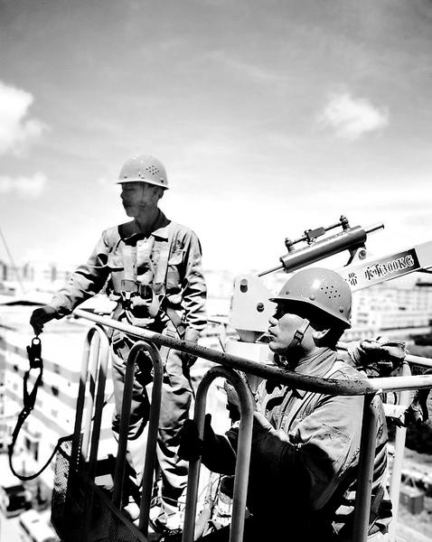 進入夏季以來,為做好防臺防汛工作,對輸煤棧橋進行全面處理防腐,晉南熱電公司施工人員頂著高溫酷暑,輪流在30多米高空作業(yè)。圖為7月4日,施工人員正在更換最高段的C6棧橋頂部和側面護板。(周國利 攝)