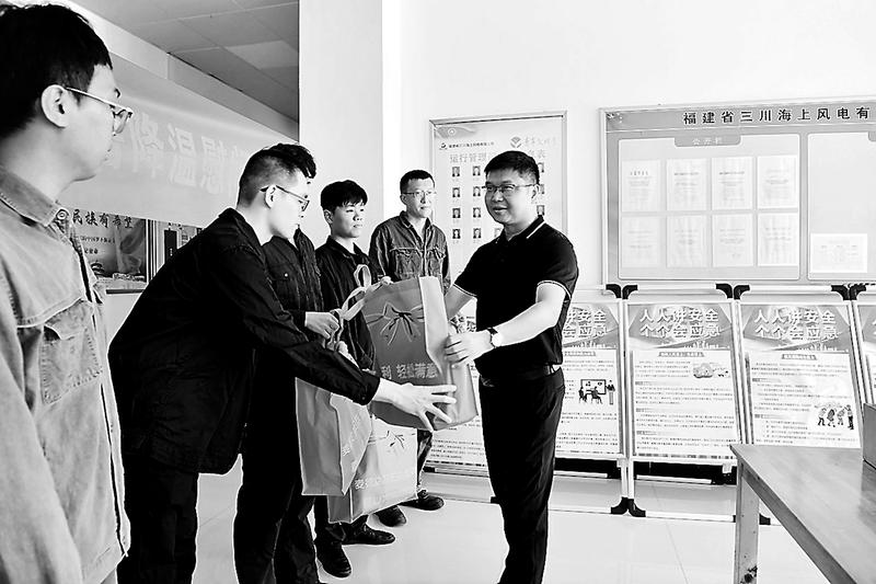 7月4日,三川風(fēng)電公司工會開展2023年防暑降溫慰問活動,為一線職工送去防暑降溫用品,并叮囑大家做好年檢準(zhǔn)備工作,注意安全和防暑降溫,把安全、健康放在第一位。