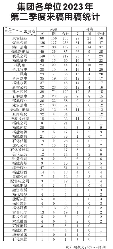 集團各單位2023年第二季度來稿用稿統(tǒng)計