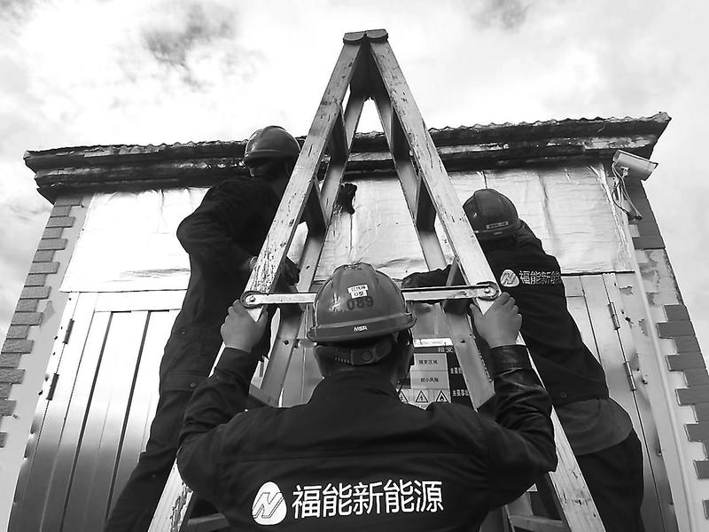 連日來(lái),福能新能源公司密切關(guān)注臺(tái)風(fēng)“杜蘇芮”的實(shí)時(shí)路徑,統(tǒng)籌人員力量,落實(shí)值班值守,確保安全設(shè)施、設(shè)備完好,切實(shí)做好防臺(tái)防汛的各項(xiàng)準(zhǔn)備,確保人員和財(cái)產(chǎn)安全。圖為隆教風(fēng)電場(chǎng)檢修人員對(duì)風(fēng)機(jī)箱變和水冷散熱器戶外部分進(jìn)行加固和特巡。