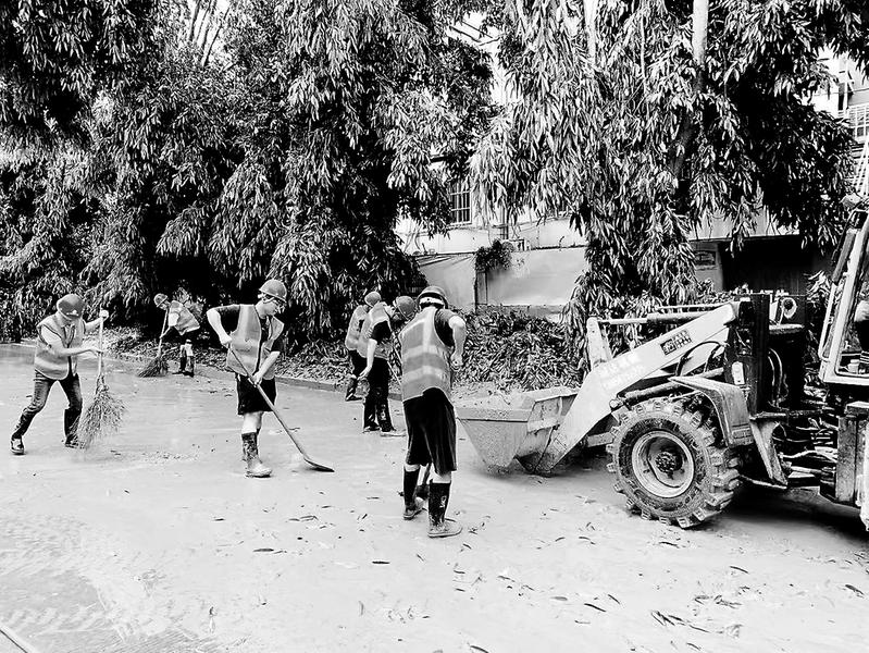 及交通復(fù)運工作救災(zāi)及交通復(fù)運工作。圖為7月29日,項目管理人員正在清理道路淤泥。。