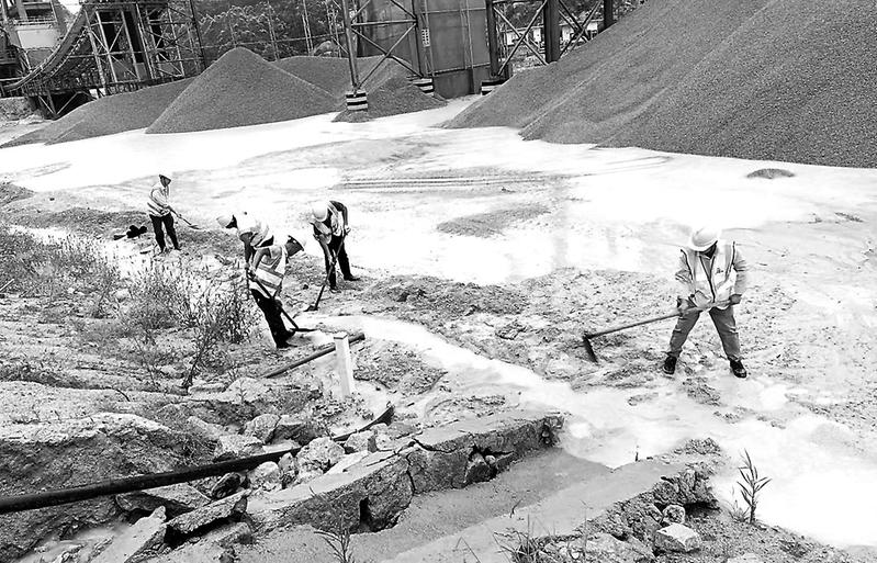 7月28日中午,為盡快恢復(fù)生產(chǎn)運(yùn)行,福能新材漳州分公司各部門全體出動,組織青年突擊隊(duì)參與隱患排查和臺風(fēng)災(zāi)后生產(chǎn)恢復(fù)。圖為青年突擊隊(duì)隊(duì)員正在對排水溝進(jìn)行清淤。
