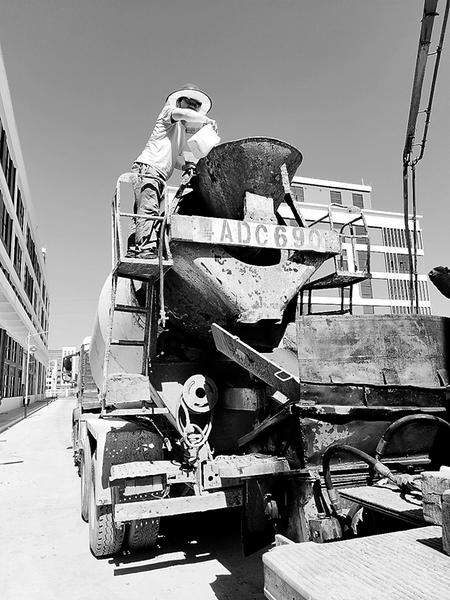 建材控股莆田混凝土公司實驗室工地服務(wù)人員認(rèn)真做好高溫防護(hù),堅守崗位,盡心盡責(zé)完成工地現(xiàn)場服務(wù)工作。圖為近日,工地服務(wù)人員正在進(jìn)行技術(shù)服務(wù)。(邱新盛 攝)