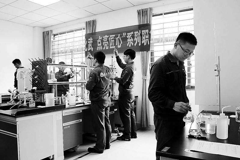 8月10日,福化環(huán)保公司工會舉辦“技能比拼點(diǎn)亮匠心”職工技能比武競賽,圖為比賽現(xiàn)場。(黃莉清 攝)