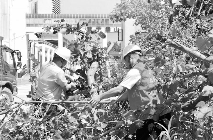 臺風肆虐過后,廠區(qū)多處樹木倒伏、斷枝,阻礙了道路。晉江氣電人迅速開展災后自救,組織共產(chǎn)黨員、團員青年、行政后勤等50余人義務勞動,亂枝清理、電鋸分段、裝車運送……經(jīng)過近3個小時的通力合作、連續(xù)奮戰(zhàn),廠區(qū)主要道路通暢了。