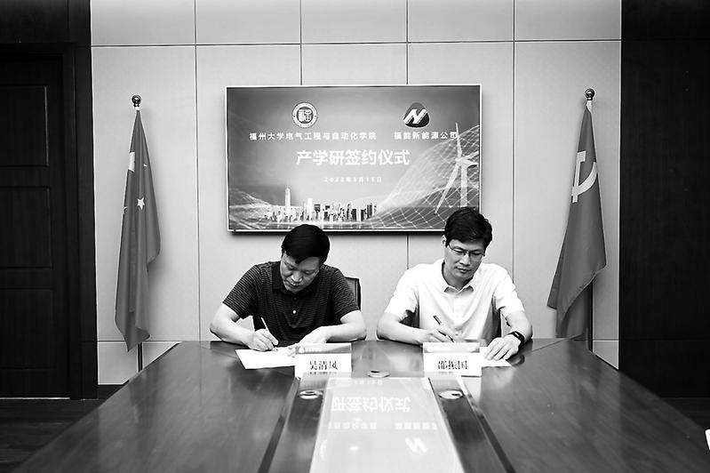 8月15日,福能新能源公司與福州大學(xué)電氣工程及其自動化學(xué)院產(chǎn)學(xué)研簽約儀式在該公司后勤保障基地舉行,該公司黨委副書記、總經(jīng)理吳清鳳與學(xué)院副院長邵振國代表校企雙方簽約。簽約儀式結(jié)束后,雙方圍繞新能源領(lǐng)域的生產(chǎn)、技術(shù)改造、技術(shù)引進(jìn)中急需解決的難題和攻關(guān)項(xiàng)目、科研合作開發(fā)等方面進(jìn)行了座談。