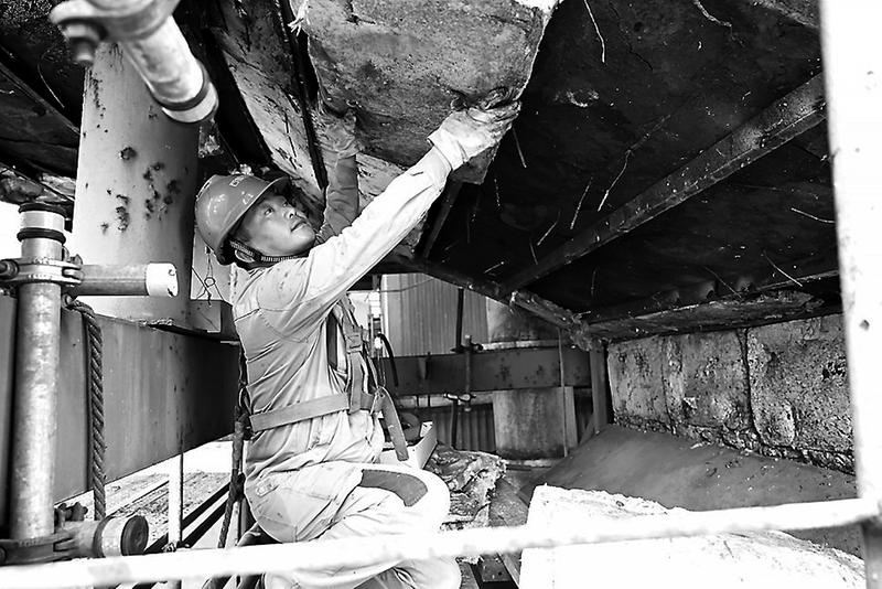 保障鍋爐設(shè)備的健康是該公司各項(xiàng)工作的重中之重。站在該公司3號(hào)鍋爐上,雖然身處高處,但烈日下吹來(lái)的海風(fēng)都是熱的。防腐班員張豪杰在略顯逼仄的煙道外部,耐心地焊接受到腐蝕的煙道表層,并拿起身旁的復(fù)合硅酸鋁保溫棉細(xì)心比對(duì)。“配合大家把鍋爐恢復(fù)到‘滿(mǎn)狀態(tài)’才是要緊事,熱點(diǎn)兒沒(méi)事。”他一邊說(shuō)著,一邊系好安全帶返回?zé)煹览^續(xù)干活。高溫還“烤”驗(yàn)著鍋爐檢修工,他們冒著炎熱用心檢修鍋爐,該公司鍋爐檢修主管助理莊培煌手持電磨機(jī)對(duì)著閥門(mén)專(zhuān)心打磨,頭燈反射的光照在汗珠上閃爍著點(diǎn)點(diǎn)“星光”,但他連汗都顧不上擦,繼續(xù)認(rèn)真打磨著。完成維修后,他們拿起慰問(wèn)人員遞來(lái)的飲料一飲而盡。