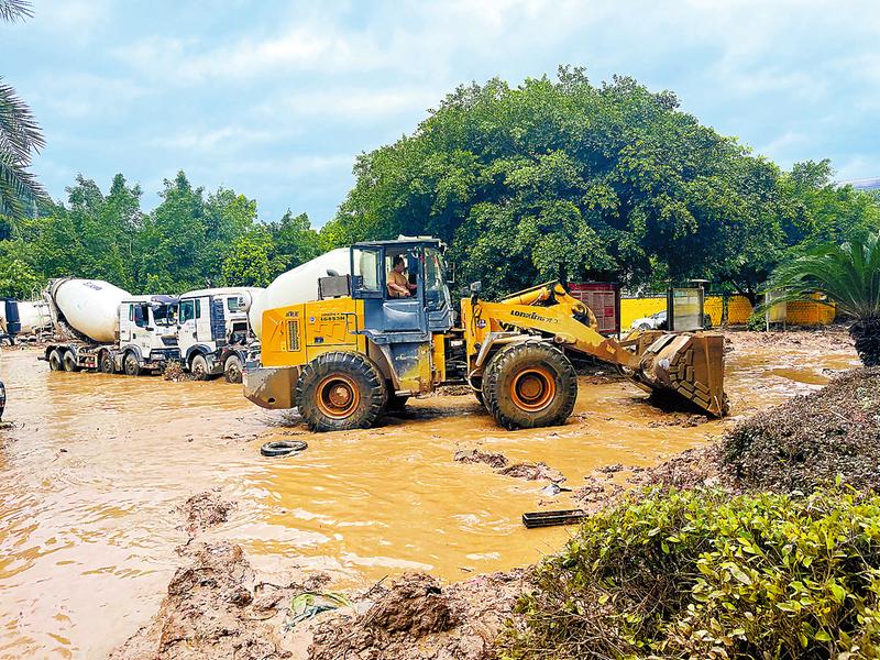 位于福清市鏡洋鎮(zhèn)的建材控股福清混凝土公司受災(zāi)嚴(yán)重,受外部橋梁坍塌、河道護(hù)坡塌方影響,河水倒灌。9月6日,該公司發(fā)生險(xiǎn)情后,立即啟動(dòng)應(yīng)急預(yù)案。圖為該公司黨支部迅速行動(dòng),組織黨員突擊隊(duì)積極開(kāi)展災(zāi)后公司清淤工作,確保盡快恢復(fù)正常生產(chǎn)生活。