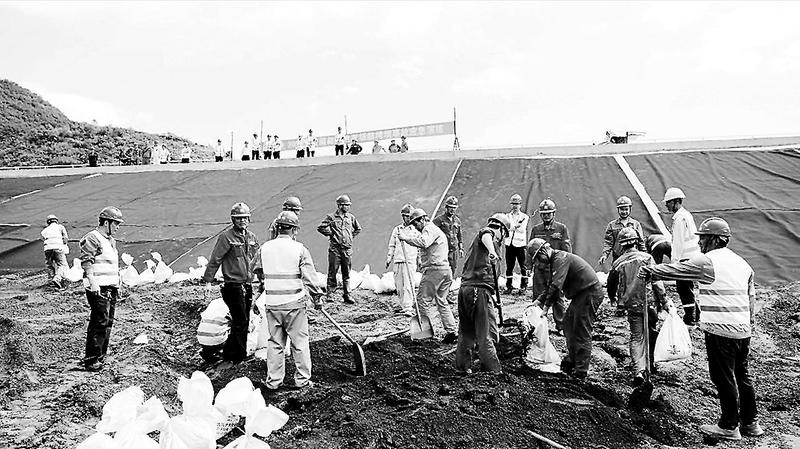 為做好2023年防汛抗旱工作要求,福能貴電公司于8月31日舉辦了“2023年灰場(chǎng)防洪、防垮壩事故應(yīng)急演練”。圖為演練現(xiàn)場(chǎng)。(羅金寶攝)