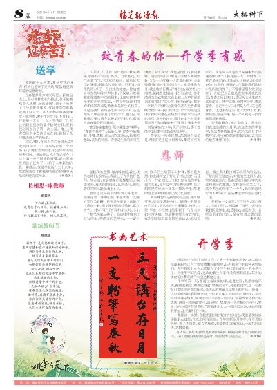 云天收夏色,木葉動秋生。愿少年們在這浪漫的九月里,在這收獲的季節(jié)里,在這青春的旅途里,把閃光的日子盡情抒寫,將寶藏的瞬間抓拍收藏,去有風的地方肆意飛揚。(林婷婷)