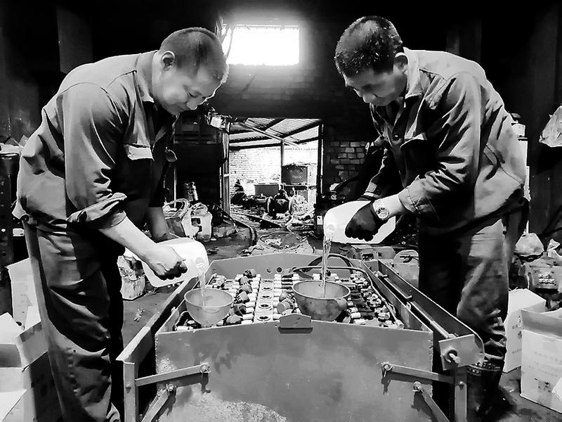 為確保礦山機(jī)電設(shè)備的安全可靠運(yùn)行,福建煤電公司龍?zhí)睹旱V機(jī)電隊(duì)加強(qiáng)對(duì)電瓶車的日常維護(hù)保養(yǎng),保證蓄電池的正常工作狀態(tài)。圖為近日,該礦兩位機(jī)電維修人員給新電瓶車的鉛酸蓄電池添加補(bǔ)充標(biāo)準(zhǔn)液。(陳思忠 攝)
