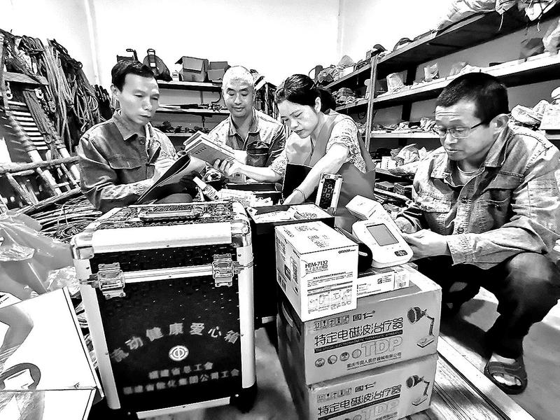 日前,由福建省總工會贈送的“流動健康愛心箱”正式“入戶”福建煤電公司2個(戶外)一線班組。圖為9月8日,該公司工會人員正在與電力外線班組交接配置的應(yīng)急藥品和便攜醫(yī)療設(shè)備清單。