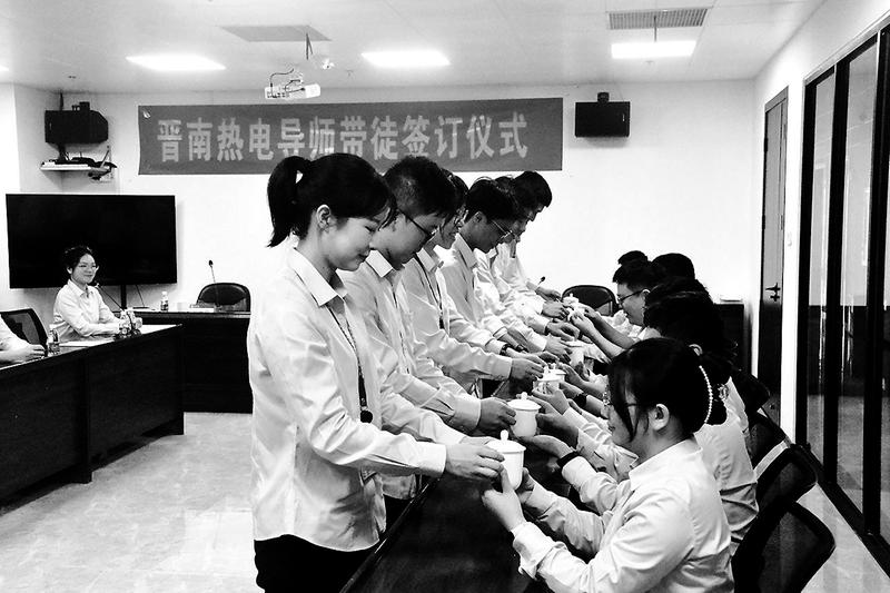 9月11日,晉南熱電公司團(tuán)總支開(kāi)展2023年度“導(dǎo)師帶徒”合同簽訂儀式活動(dòng),16對(duì)師徒在完成敬茶禮后簽訂《“導(dǎo)師帶徒”合同書(shū)》,激發(fā)“傳、幫、帶”活力,助力“新手”快速成長(zhǎng)成才。(肖長(zhǎng)堂 攝)