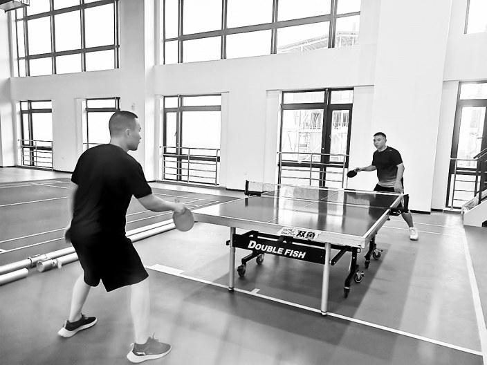現在好了,入住公司的新宿舍樓,就意味著一天到晚,一年四季,老周都可以享受到“以廠為家”的便捷。刮風下雨,早上仍然可以在12樓跑步、打太極拳;三頓飯不出樓房就可以按時吃得熱熱乎乎;晚上更是可以約上一群愛好乒乓球的球友,在球館的兩張球臺上盡情揮舞球拍,大汗淋漓、不亦樂乎。