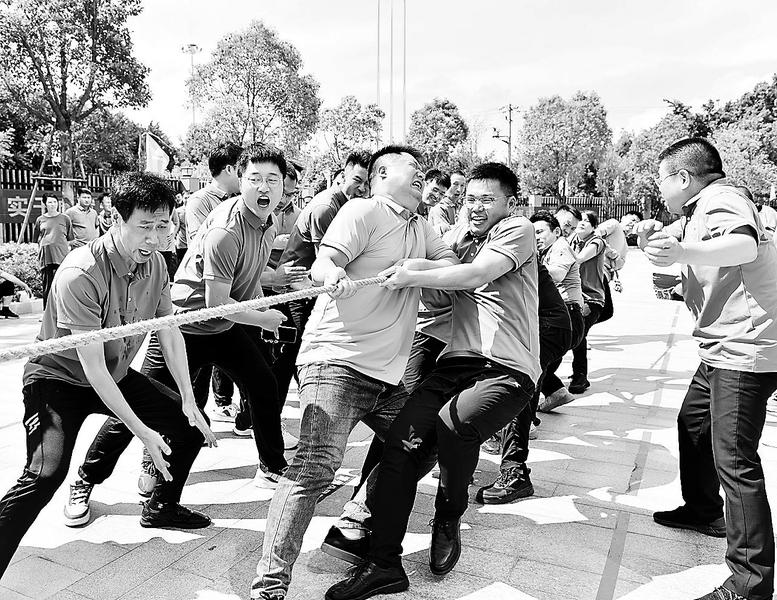 在中秋、國慶雙節到來前夕,福能新能源公司在后勤保障基地開展豐富多彩的文體活動,喜迎新中國成立74周年。(鄢青梅攝)