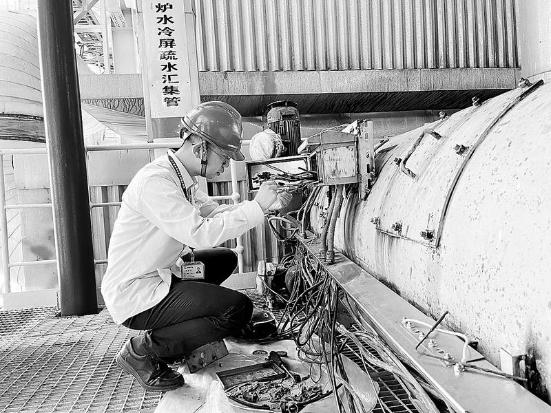 連日來,晉南熱電公司設備維護部人員認真做好設備維護工作,確保全廠機組安全、穩定、可靠的運行。圖為設備部熱控專業工程師正在對給煤機進行檢修維護。(葉巖 攝)