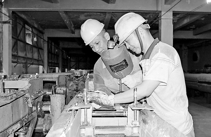 福維公司將技術創新作為“提質增效、提速攻堅”的有力抓手,在裝備升級、技術工藝創新方面狠下功夫,積極引導員工創新創效,助力企業打贏提質降本增效攻堅戰。圖為近日,該公司維綸廠員工正在利用轉產間隙改進紡熱浴中導桿,以減少烘干工序電耗,提高生產穩定性。(陳福華攝)