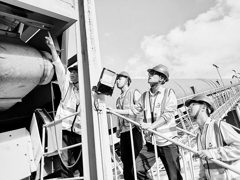 新材公司權屬漳州公司開展設備隱患排查工作,為礦區生產保駕護航。圖為9月26日,該公司工作人員正在對設備進行巡查。(王志山攝)
