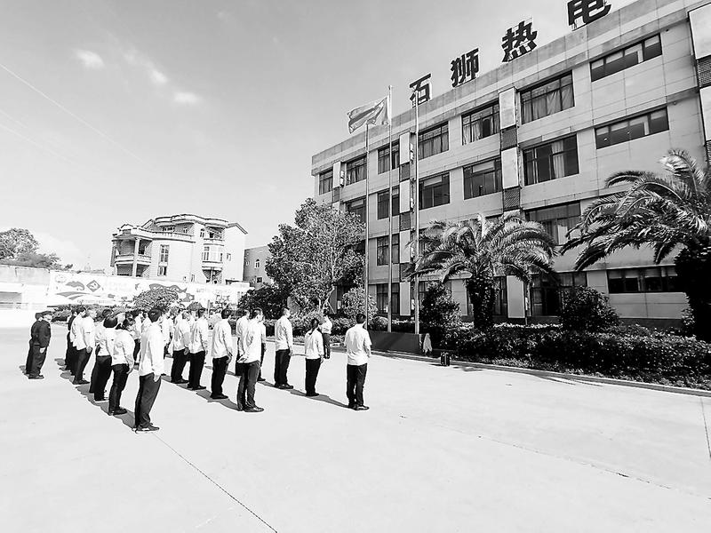 10月1日,石獅熱電公司在綜合辦公樓前舉行隆重的升旗儀式,慶祝中華人民共和國成立74周年。 (郭軍瓊 黃曉恒 攝)