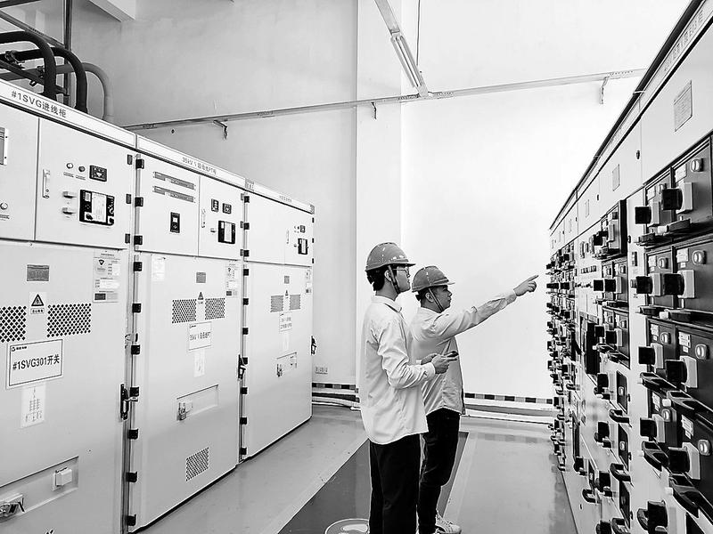 “雙節”期間,為確保電力保供,福能海峽公司陸上集控站維檢人員堅守崗位,確保設備順利通過驗收。圖為維檢人員正在現場巡檢。