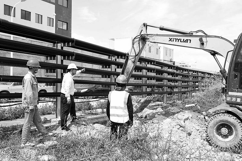 “雙節”假期,鴻山熱電公司一線人員堅守在崗,全力做好“雙節”期間各項工作。圖為該公司全力以赴推進供熱管道延伸段項目建設進度。 (吳鑫鑫 攝)