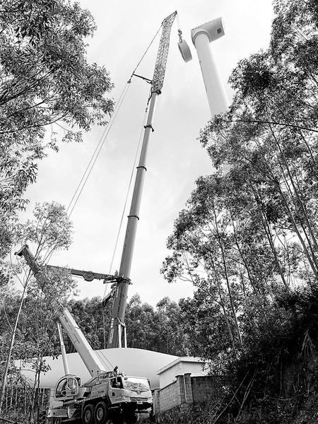 10月23日,福能新能源公司漳州片區省山風電場完成葉輪吊裝,目前正進行內部電纜安裝和發電機調試,預計3天左右可以并網發電。(沈志榮 攝)