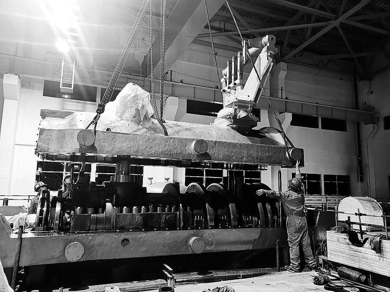 扣蓋過程中,各專業安裝人員相互合作,缸內清掃、下隔板就位、軸瓦轉子就位、上半隔板吊入、扣內缸、扣外缸等工作均進行得有條不紊,經過近11個小時的緊張配合,3號汽輪機扣蓋工作一次性完成。(丁敦畫 攝)