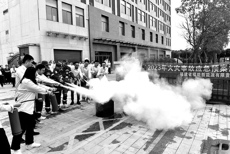 11月8日下午,在第32個全國消防日來臨之際,福能新能源公司聯合三川風電公司在后勤保障基地大樓開展火災事故應急演練。