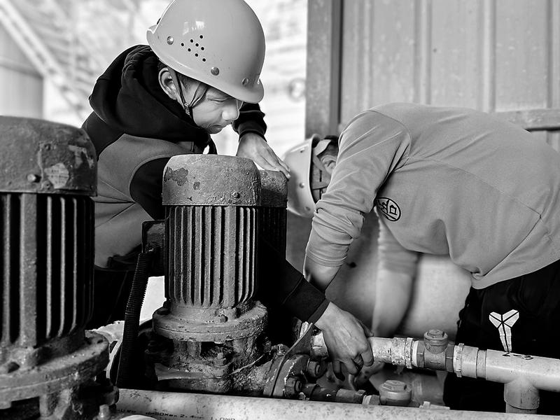 11月28日,建材控股永定混凝土公司組織維修人員,緊急搶修生產一線外加劑水泵管道滲漏問題,保障公司正常生產。(吳津 攝)