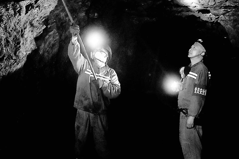 近期,永安煤業公司池坪蘆坑煤礦高度重視歲末年終的安全生產工作,通過進一步落實帶班跟班制度、現場盯守制度等措施,嚴抓井下現場的安全管理,實現礦井安全生產。圖為11月29日,該礦黨員安全督查組成員在指導采掘隊職工進行敲幫問頂。(陳思洲攝)