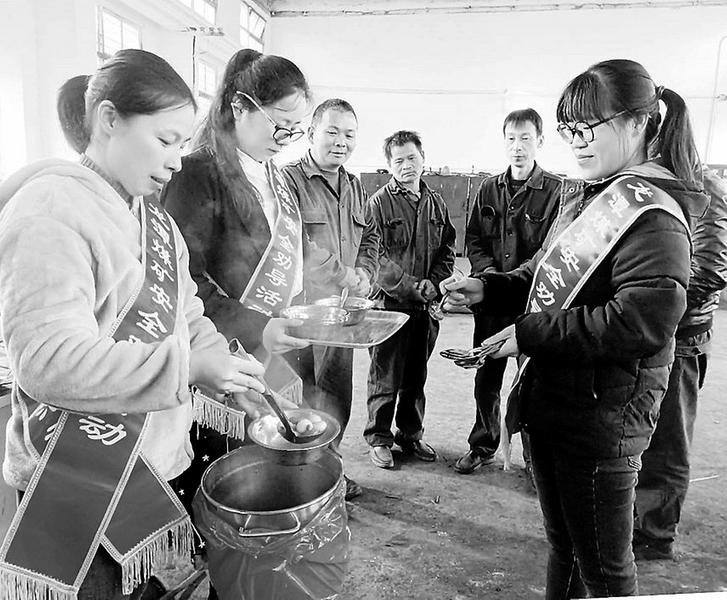 近日,福建煤電龍潭煤礦黨團志愿者在井口開展“冬至送溫暖”活動,將一碗碗熱氣騰騰的湯圓送到寒冷天氣里堅守崗位的職工手中。(林莉 攝)