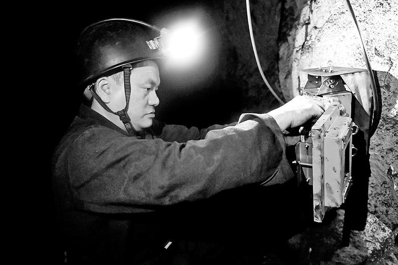 12月,福建煤電公司龍?zhí)睹旱V在該礦井下采區(qū)上部車場、煤倉、排矸井安裝3套車輛計數(shù)系統(tǒng),該系統(tǒng)能夠及時準(zhǔn)確將相關(guān)數(shù)據(jù)反映到地面計算機系統(tǒng),以便于進(jìn)行更加合理的調(diào)度管理。圖為12月23日,井下電工在給車輛計數(shù)系統(tǒng)副機安裝礦車流量計。(陳思忠攝)