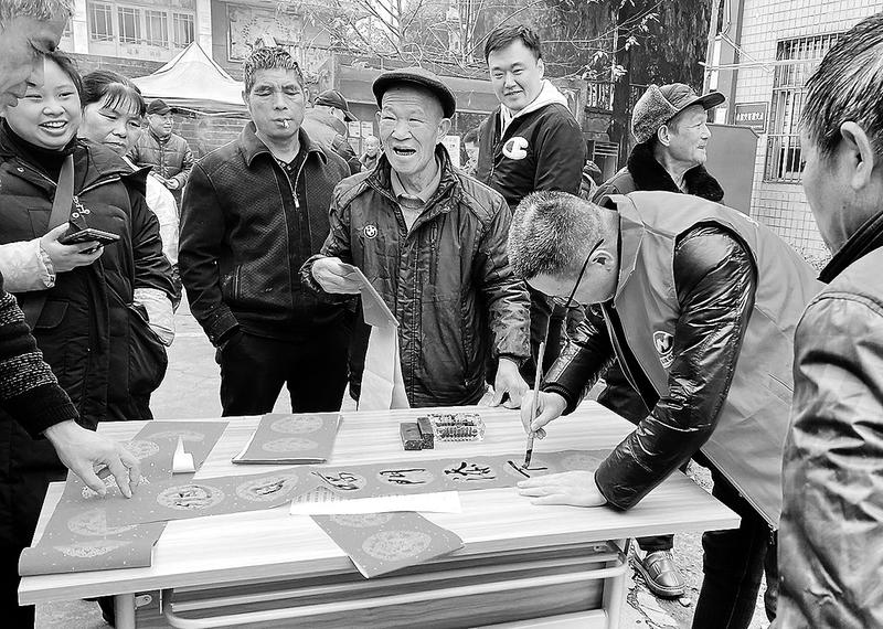 為踐行“四下基層”,落實(shí)黨員進(jìn)社區(qū)要求,2023年12月29日上午,福維公司組織黨員志愿者聯(lián)合屬地汶州社區(qū)開(kāi)展共建活動(dòng),為社區(qū)居民書寫、贈(zèng)送春聯(lián),營(yíng)造了濃厚的節(jié)日氛圍。(林月芳攝)