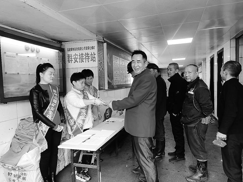 為切實(shí)做好一線職工防寒御寒工作,福建煤電公司翠屏山煤礦全面開展“寒冬送溫暖”活動(dòng)。圖為2024年元旦,該礦組織人員在井口為職工發(fā)放棉服。(林光明攝)