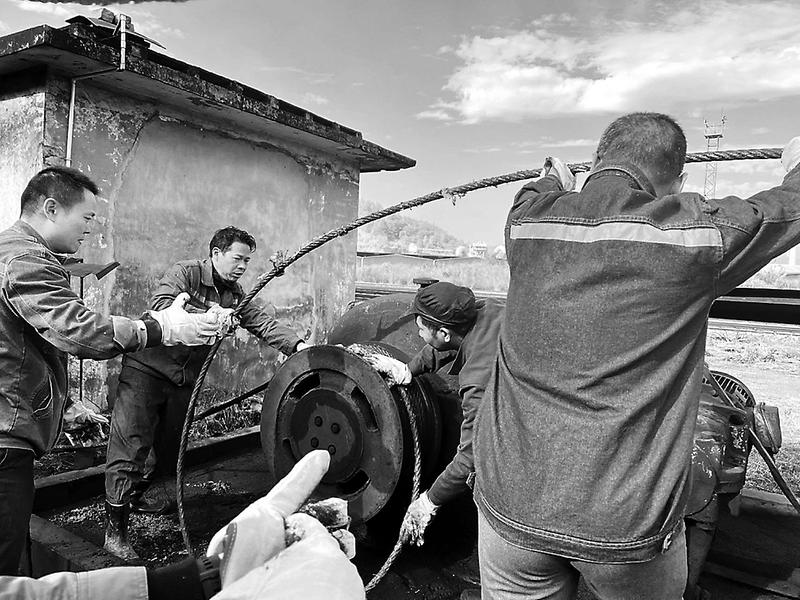 元旦期間,福建煤電公司坎市發(fā)運(yùn)站利用(林玉梅攝)發(fā)運(yùn)空隙時(shí)間,組織相關(guān)人員更換站區(qū)鐵路專用絞車牽引鋼絲繩。▲