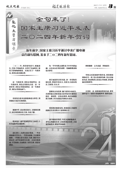 國家主席習近平發(fā)表二〇二四年新年賀詞