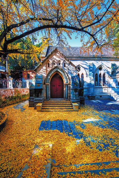 教堂門前有一棵古銀杏樹,枝繁葉茂,形似巨傘,一年四季為教堂和行人遮風(fēng)擋雨,默默付出。很多人喜歡石厝教堂,其實(shí)更喜歡的是它門口一直陪伴著的那棵銀杏樹,也是福州市區(qū)唯一棵老銀杏樹,到了秋冬,這棵銀杏立刻換去綠衣,身披金裝,給游客展現(xiàn)出一片秋意濃濃的景象。這棵銀杏與教堂相守百年,經(jīng)歷了清朝的風(fēng)、民國的雨和新中國的陽光,目睹歲月的變遷,見證了煙臺(tái)山昔日的滄桑和如今的輝煌,儼然形成了具有煙臺(tái)山人文氣質(zhì)的銀杏樹,成了福州市區(qū)唯一一棵被定為一級(jí)保護(hù)古樹名木的銀杏。