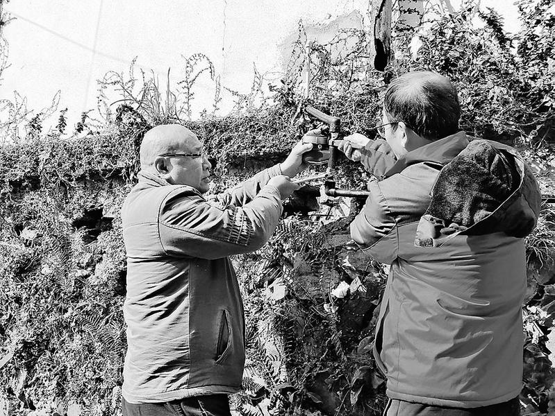 ③永安煤業物業分公司著力加強易凍區域供水管道的巡查巡護力度,為裸露管道、水表“穿衣戴帽”,確保供水站設施設備在低溫時穩定運行。圖為1月24日水電工正在更換凍裂的水表。(蔡麗燕攝)