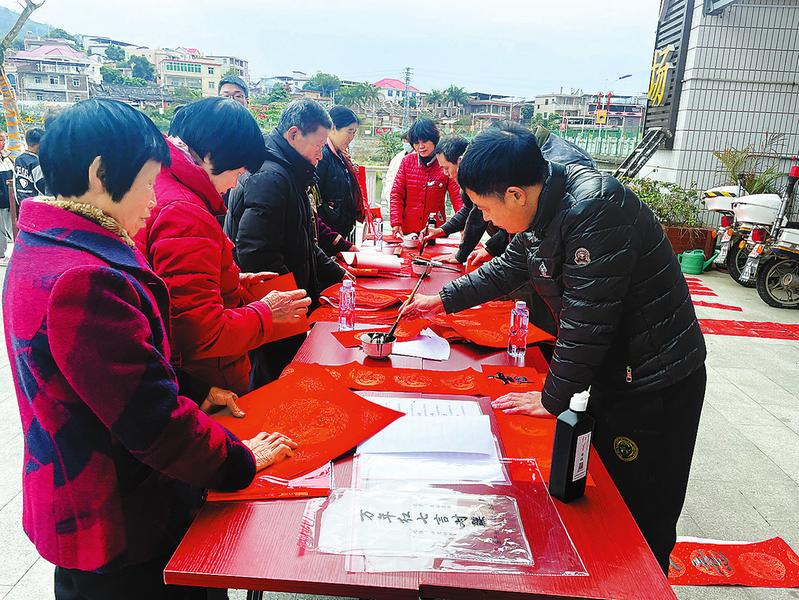 近日,配售電山美綜合公司聯(lián)合泉州市山美水庫(kù)水資源調(diào)配中心、碼頭鎮(zhèn)詩(shī)南村開(kāi)展2024年山美水庫(kù)進(jìn)社區(qū)“寫(xiě)春聯(lián)慶佳節(jié)送祝福”志愿服務(wù)活動(dòng)。(李莎菲李佳紅攝)