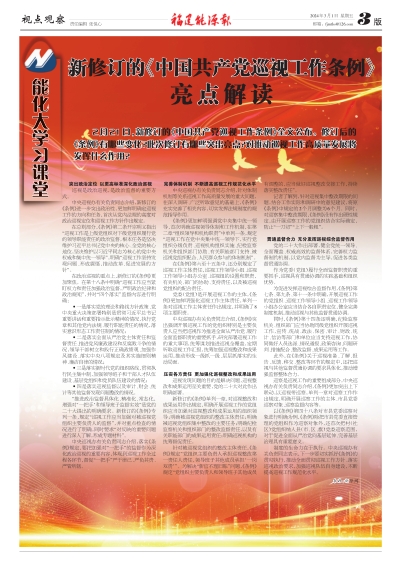 新修訂的《中國共產(chǎn)黨巡視工作條例》 亮點(diǎn)解讀