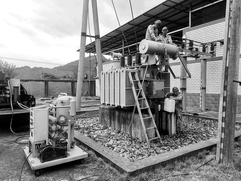 節(jié)后復(fù)工復(fù)產(chǎn)以來,永安煤業(yè)上京供電所加強(qiáng)電設(shè)備維護(hù),確保設(shè)備完好率達(dá)到100%。圖為3月4日,運(yùn)維檢修人員在廣元工區(qū)35千伏變電站更換2#主變壓器濾油。(鄭春生攝)