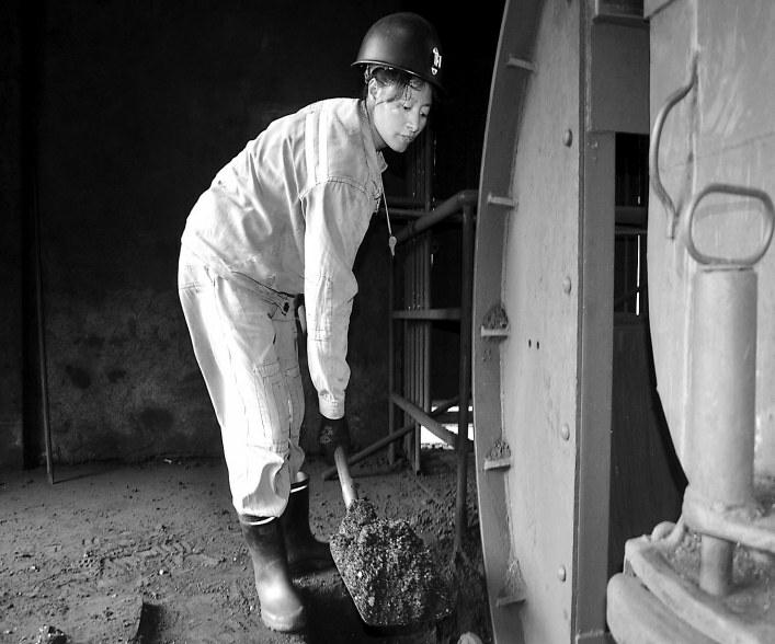 當(dāng)卡煤卡矸班職工將煤炭倒入煤倉(cāng)時(shí),比較大塊的塊煤會(huì)把煤倉(cāng)堵住。每次遇到這種情況,李登容就會(huì)拿起鐵棍將大塊的塊煤敲碎,使塊炭能夠順利地倒入煤倉(cāng)。