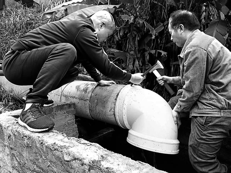 近日,福建煤電公司箭竹坪煤礦組織相關(guān)人員對地面的防洪、排水設(shè)施進(jìn)行專項(xiàng)排查治理行動(dòng)。圖為該礦人員對照整改清單上的內(nèi)容更換導(dǎo)水彎頭。(李錦華簡盛敏攝)